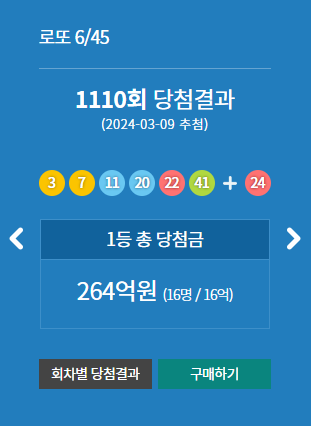 로또 당첨 결과 - 1110회